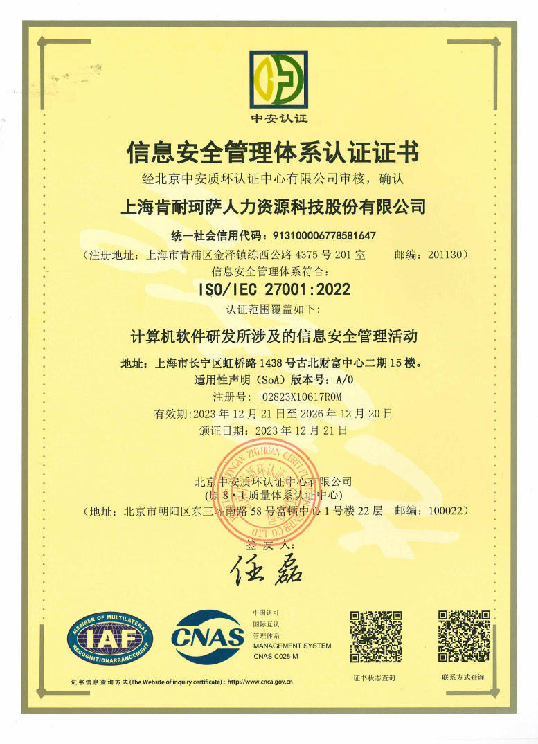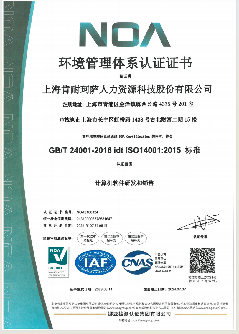 上海肯耐珂萨人力资源科技股份有限公司(KNX),人力资本管理(HCM)一体化软件解决方案提供商,深耕于人力资源管理业务场景,将数字技术与管理逻辑深度融合, 为企业提供“专业化+一体化+标准化”的HCM闭环产品集群,包括人事管理、人才与组织管理两大领域,满足企业广泛的人力资源数智化管理需求。 公司成立于2008年,领航HCM SaaS服务15年,致力于以数智化科技提升企业组织效能。