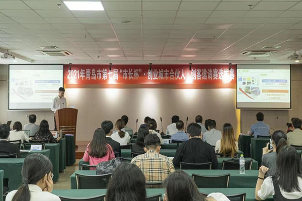 7月15日,由青岛市民营经济发展局、青岛市财政局、青岛市教育局主办,青岛市中小企业公共服务中心、青岛开放大学(青岛创业大学)共同承办的2021青岛市第七届“市长杯”•创业城市合伙人•创客邀请赛选拔赛在青岛开放大学(青岛创业大学)顺利举行,来自山东大学(青岛)、中国海洋大学、青岛大学、中国石油大学等高校及区市的50支参赛团队进行了精彩纷呈的项目路演展示。来自蓝谷投资等投资机构评委、青岛市股权与创业投资行业协会等机构代表、青岛电视台蓝睛客户端等新闻媒体代表及观摩企业共100余位嘉宾汇聚一堂,共同见证选拔赛15强的诞生。
