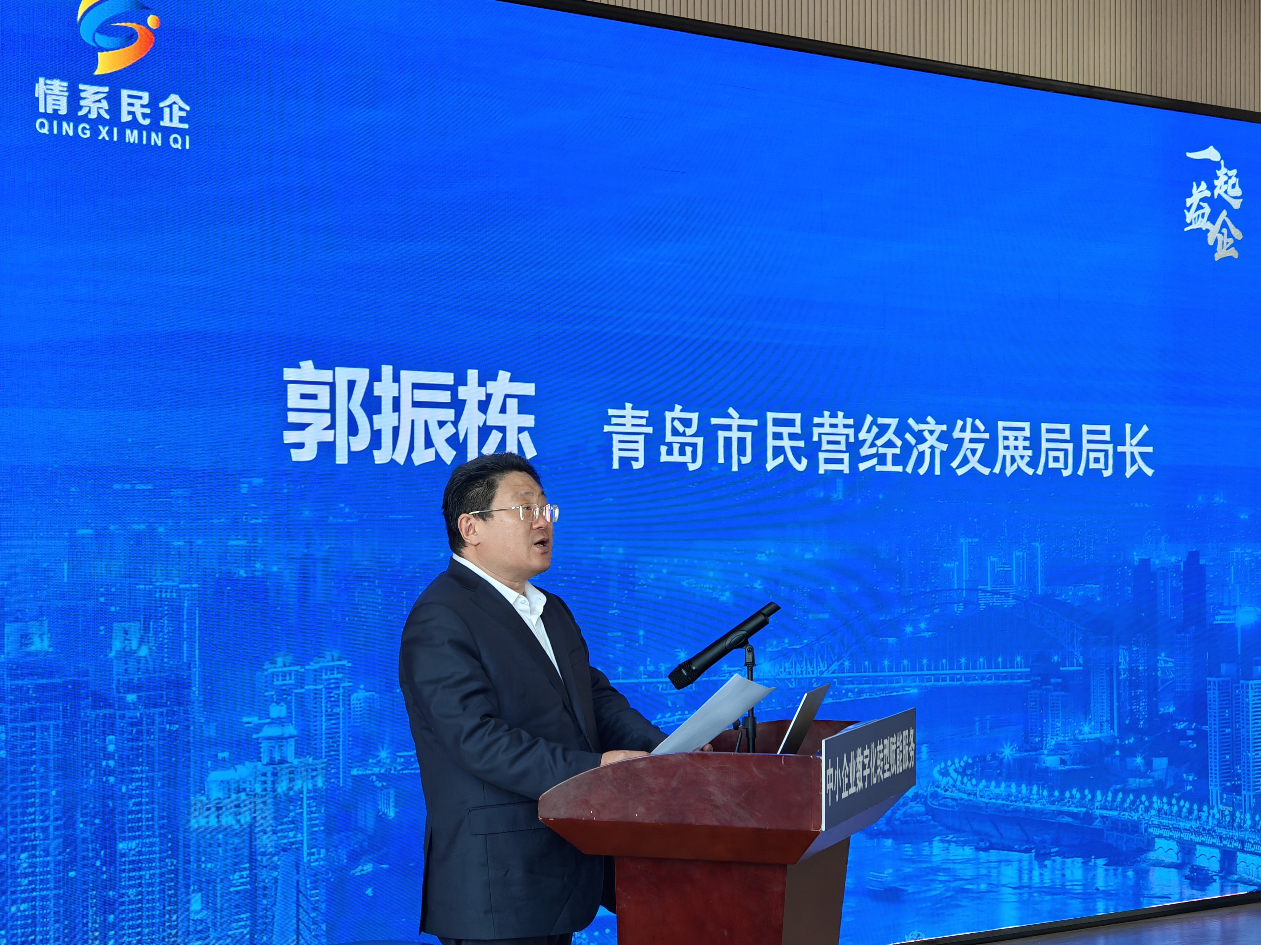 郭振栋局长在致辞中,首先传达学习了习近平总书记在民营企业座谈会上的重要讲话精神。习近平总书记出席民营企业座谈会并发表重要讲话,强调“新时代新征程民营经济发展前景广阔、大有可为,民营企业和民营企业家大显身手、正当其时”。习近平总书记的重要讲话,在全社会引起热烈反响,鼓舞人心、催人奋进,必将有力促进民营经济健康发展、高质量发展。青岛市民营经济系统必须统一思想、坚定信心,把促进民营经济发展的政策措施落实到位,引导广大企业专心致志做强、做优、做大企业,努力开创民营经济中小企业高质量发展、新局面,引导民营经济走向更加广阔的舞台。强调,中小企业数字化转型是新形势下我市工业经济、民营经济发展壮大的必答题,希望企业能够抓住政策机遇期,借鉴转型成功案例,进一步增强数字化转型信念,明确转型改造目标和实施路径。