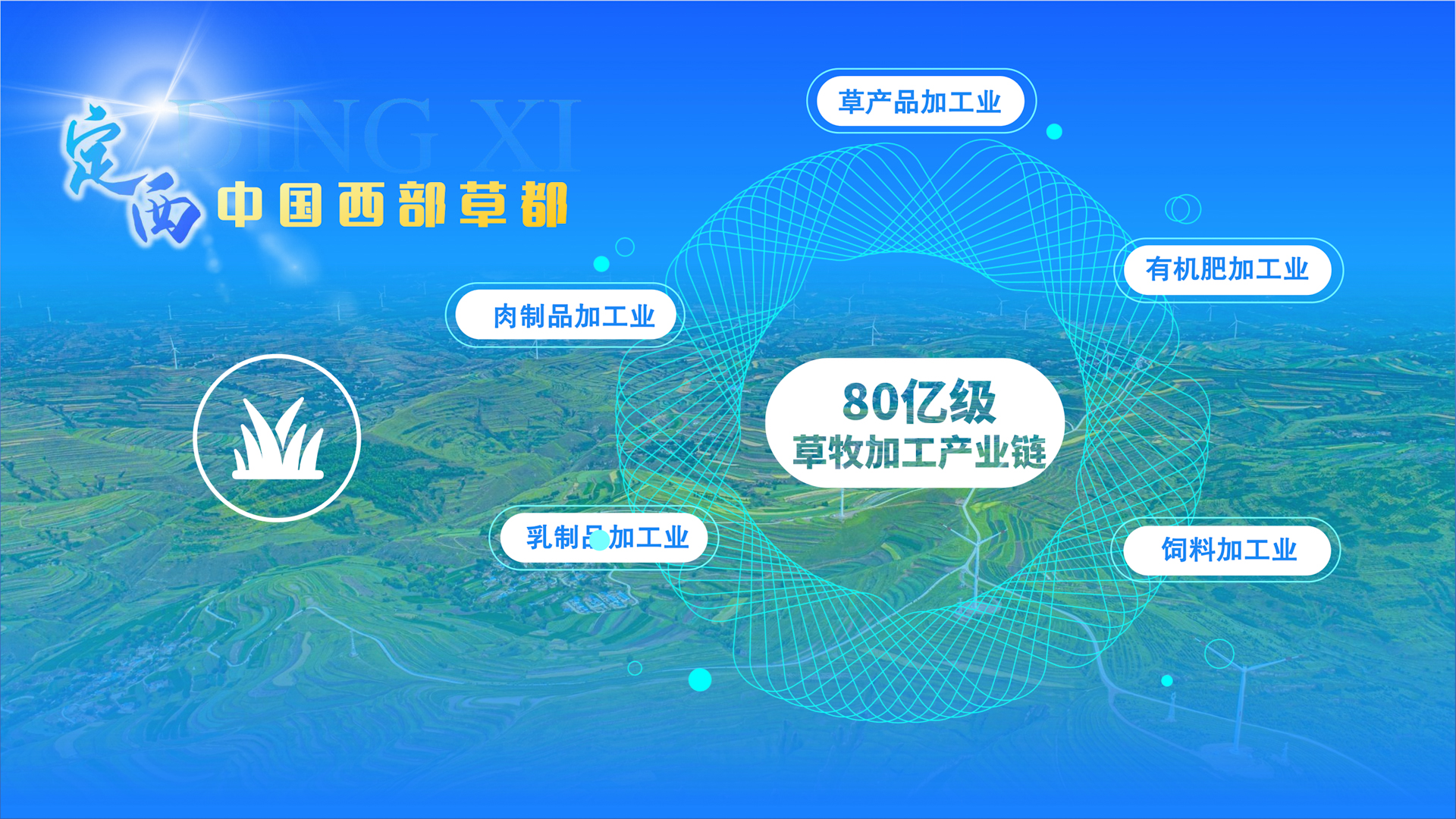 定西天然草地广袤,复杂的地质地理和独有的光热资源,为不同品种的饲草种植、生产和加工创造了有利条件,多年生饲草留床面积400万亩,年产鲜草总量1500万吨,饲草料、肉制品加工已初具规模。定西市将围绕打造“中国西部草都”,持续完善种养加销全产业链体系,加快发展草产品、肉制品、乳制品、饲料和有机肥加工业,推动草畜产业全环节升级、全链条增值,打造80亿级草牧加工产业链。