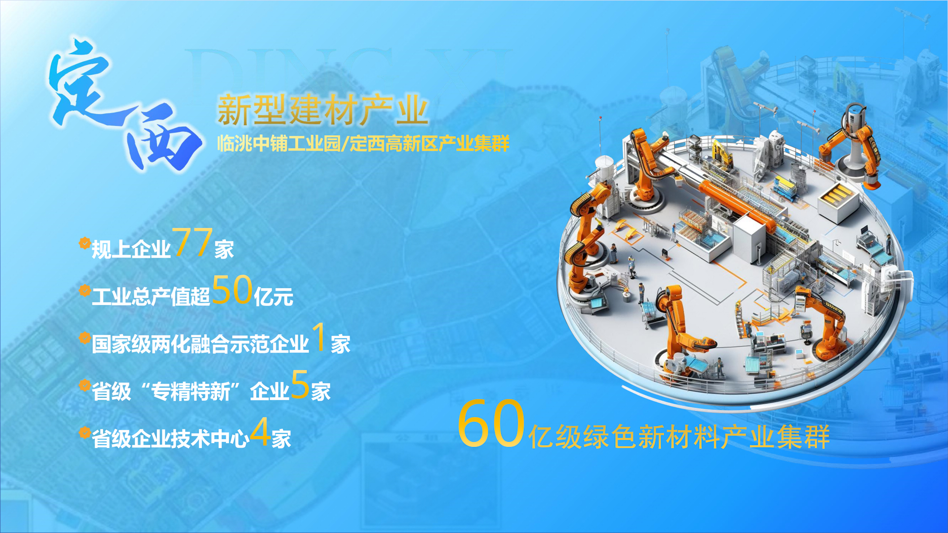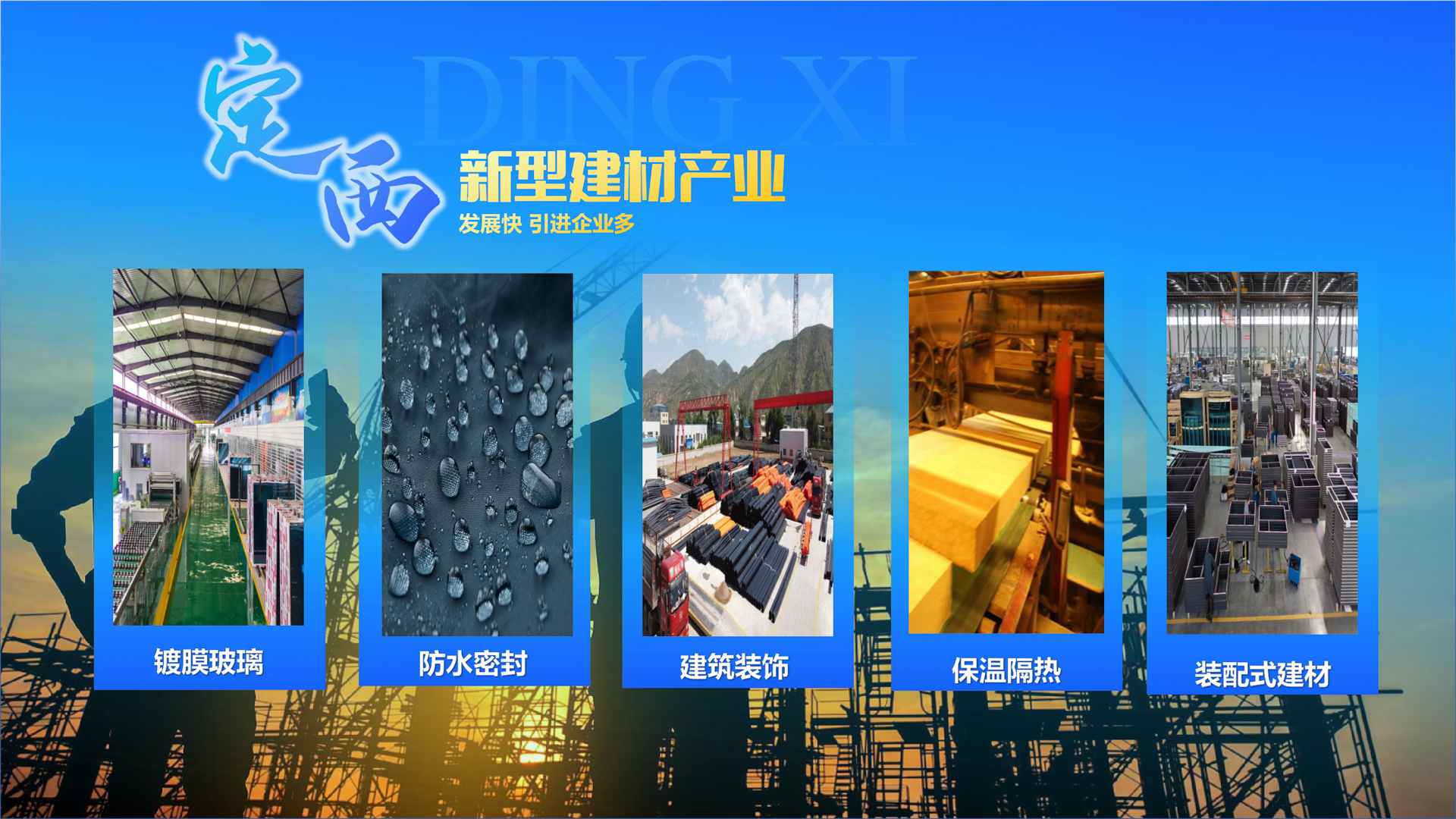 新型建材产业是定西市近年来发展较快、引进企业较多的产业,随着甘肃索莹新型建材产业园、临洮县一体化外墙保温材料等一大批重大项目落地实施,镀膜玻璃、防水密封、建筑装饰等新型建材实现了从无到有、从小到大的发展,以临洮中铺工业园、定西高新区为主的新型建材产业集群已初具规模。定西市将牢牢把握绿色化、低碳化、智能化发展趋势,重点发力高端特种水泥、新型墙体、隔热保温材料、装配式建材等材料和制品,打造60亿级绿色新材料产业集群。
