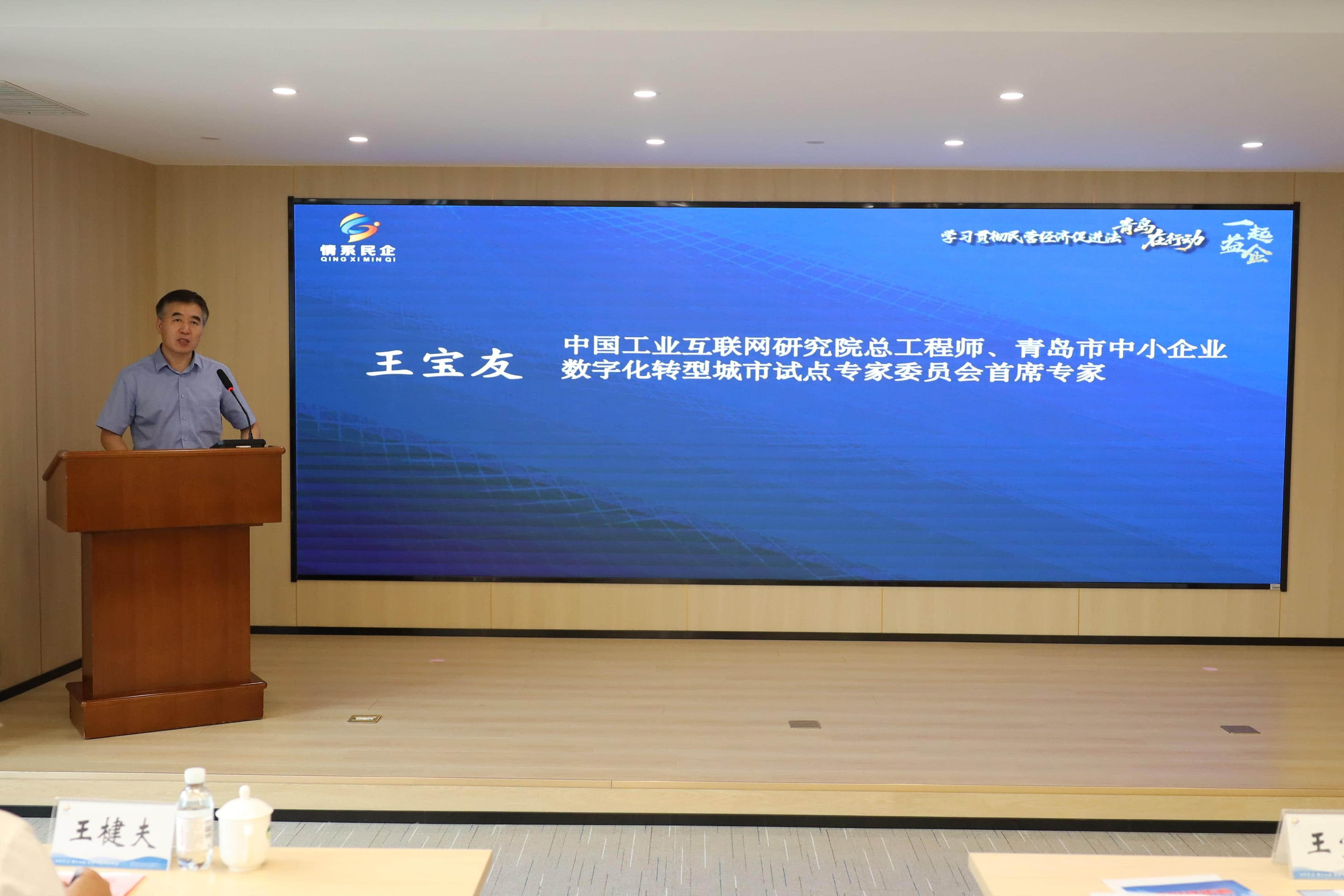 9月11日,由山东省工业和信息化厅指导,中国工业互联网研究院山东分院、青岛市民营经济发展局主办,青岛市中小企业公共服务中心承办的青岛市中小企业数字化转型赋能服务基地启用仪式暨专场对接活动,在青岛市中小企业服务基地成功举办。中国工业互联网研究院总工程师、青岛市中小企业数字化转型城市试点专家委员会首席专家王宝友,山东省工业和信息化厅总经济师、二级巡视员王楗夫,青岛市政府副秘书长陈万胜出席活动并致辞。青岛市民营经济发展局局长郭振栋出席活动并与王宝友总工程师共同启动青岛市中小企业数字化转型赋能服务基地。青岛数据集团、青岛市部分数字化转型城市试点企业、专精特新企业及数字化服务商代表60余人参加活动。