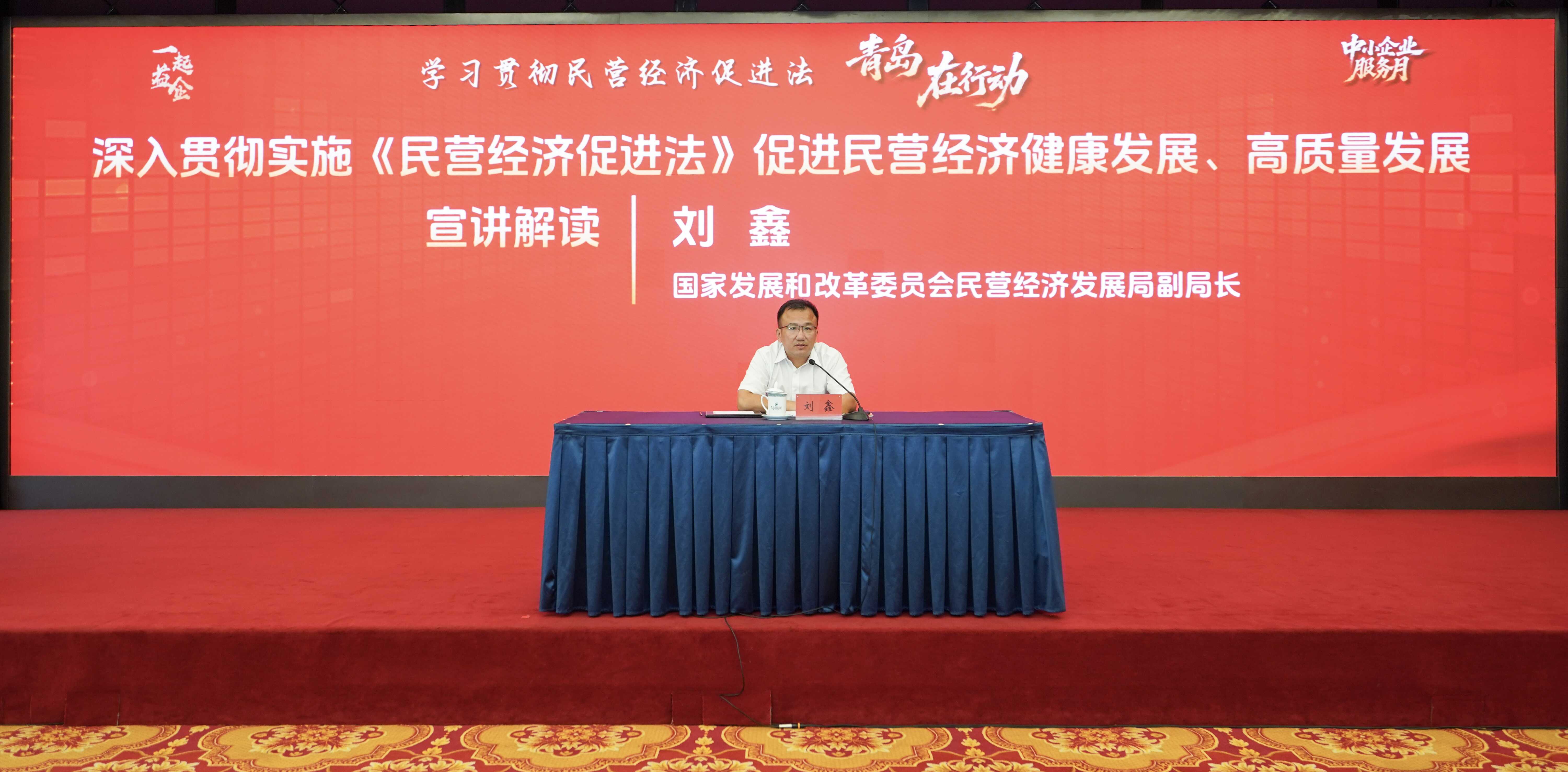 2025年6月12日,青岛市举行学习贯彻《中华人民共和国民营经济促进法》专题宣贯会议。在国家发展改革委民营经济局、山东省发展改革委指导下,青岛市汇聚政府、机构和企业三方力量,吹响民营经济法治护航集结号。国家发展改革委民营经济局副局长刘鑫出席活动并专题宣贯解读《民营经济促进法》。山东省发展改革委党组成员、副主任滕双兴,青岛市市政府党组成员朱渤出席活动并致辞。青岛市级和各区(市)相关部门负责人,150余位企业家、企业政策服务专员和《民营经济促进法》志愿宣讲团代表参加了本次会议。